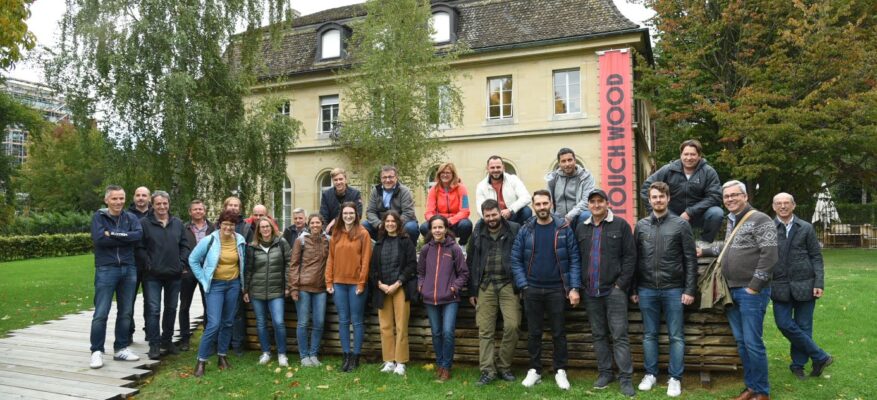 Danach brachte uns das Postauto zum Mittagessen und weiter nach Zürich zur Touch Wood-Ausstellung im ZAZ Bellerive. An der Führung vom Architekten Thomas Hildebrand, einem der Initianten der Ausstellung, erfuhren wir Interessantes über die aktuellen Entwicklungen und visionären Projekte im Holzbau in der Schweiz. Auch hier konnten wir das Engagement der Hartwag Holz AG u.a. in Form eines Eichenstammes, mit welchem das Foto entstanden ist, wiederfinden.