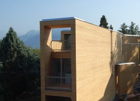 Lineas SA betraute das Architekturbüro Könz e Molo mit der Projekterarbeitung für eine Wohneinheit, bestehend aus vier Reihenhäusern in Montagnola, mit Garten, Dachgarten, Bau und Verkleidung aus Holz, so dass sie sich perfekt in einem Viertel mit im Grünen verstreuten Villen und Eigentumsresidenzen eingliedert. Das Haus wurde mit hoher Energieeffizienz und niedrigem Energieverbrauch konzipiert, nach demselben Prinzip wie das des Minergie-Standards.