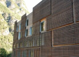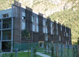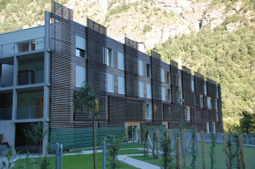 Das Architekturbüro LANDS Architetture von Lugano schafft es, eine Anlage mit flexiblem Charakter vorzuschlagen. Dies geschieht durch die Verwendung von Säulen und Platten als tragende Struktur, die eine starke räumliche Beziehung zwischen einzelnen Räumen und Gemeinschaftsräumen entwickelt, ohne auf die Verwendung von Korridoren zurückgreifen zu müssen. Der Neubau will den Energiebedarf und die Umwelt mit neuen Standards schonen, die mehr Komfort bei niedrigen Kosten ermöglichen.