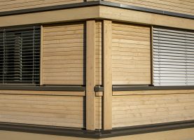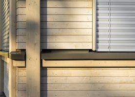 Die Holzwahl fiel auf Douglasie und wurde in zwei Profilen für die Holzfassade geliefert. Die Fassadenfarbe stammt aus unserem hauseigenen Farbkonzept Silverwood®.