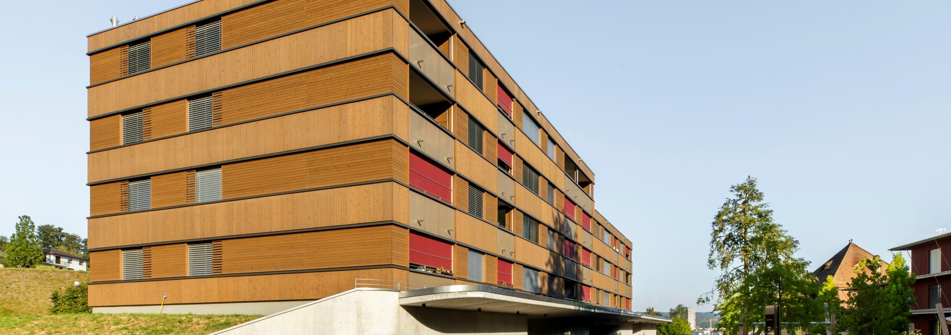 Die Holzwahl fiel auf die Holzart Fichte. Die Fassadenfarbe stammt aus unserem hauseigenen Farbkonzept Silverwood®. Für die zwei Objekte an der Gishalde 3 und 5 durften wir ebenfalls die Fassaden liefern.