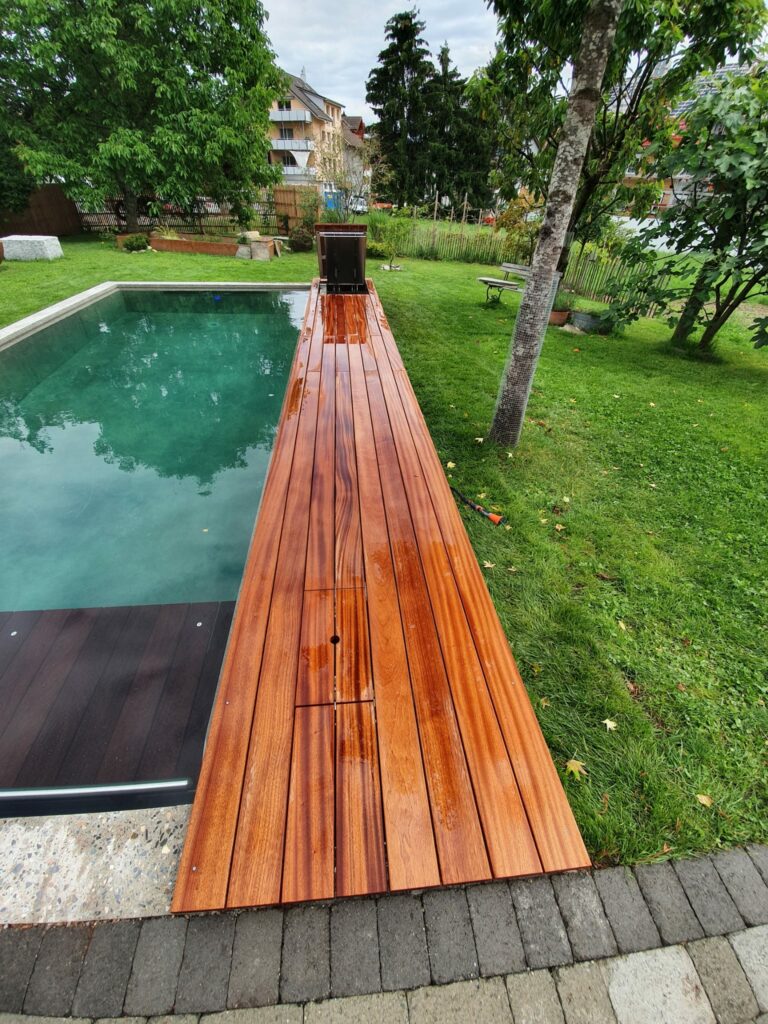 Wenn draussen sich wie drinnen anfühlt, wenn es um wohnliche Behaglichkeit geht, dann ist sicher echtes, natürliches Holz im Spiel. Zum Beispiel mit einem langlebigen Holzdeck, das auch im heissesten Sommer barfuss begehbar bleibt. Gerne zeigen wir Ihnen eine Auswahl von Projekten, bei denen Sipo-Holz zum Einsatz kam. Da Holzdecks meist im gehobenen Wohnungsbau zum Einsatz kommen, verzichten wir aus Diskretionsgründen auf die Angabe einer Adresse.