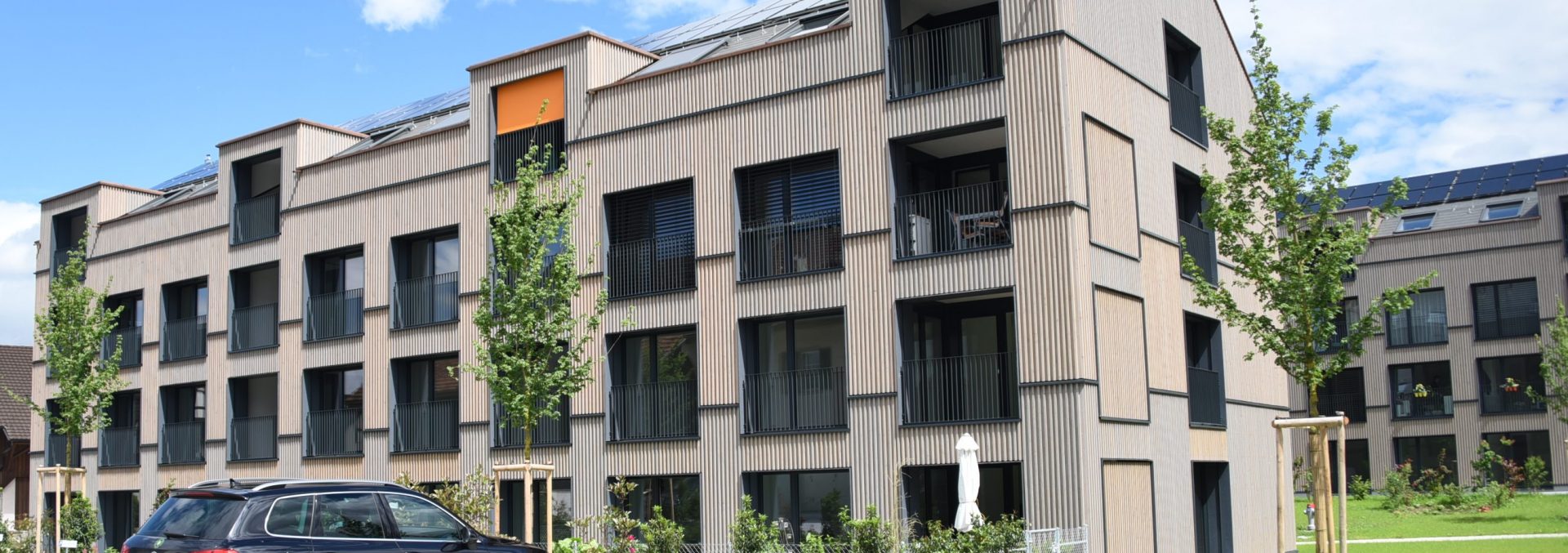 Am Dorfrand von Watt sind Mehrfamilienhäuser entstanden mit zusammen rund 50 Wohnungen. Die mehrheitlich 2,5 und 3,5-Zimmerwohnungen lassen vielseitiges Wohnen zu: Ideal im Alter aber durch die ansprechend gestaltete Anlage auch ansprechend für junge Familien. Die Holzfassaden verleihen der ganzen Anlage ein unverwechselbares Gesicht.