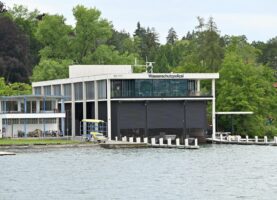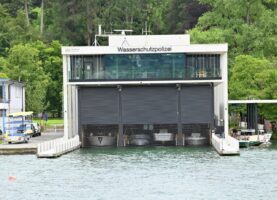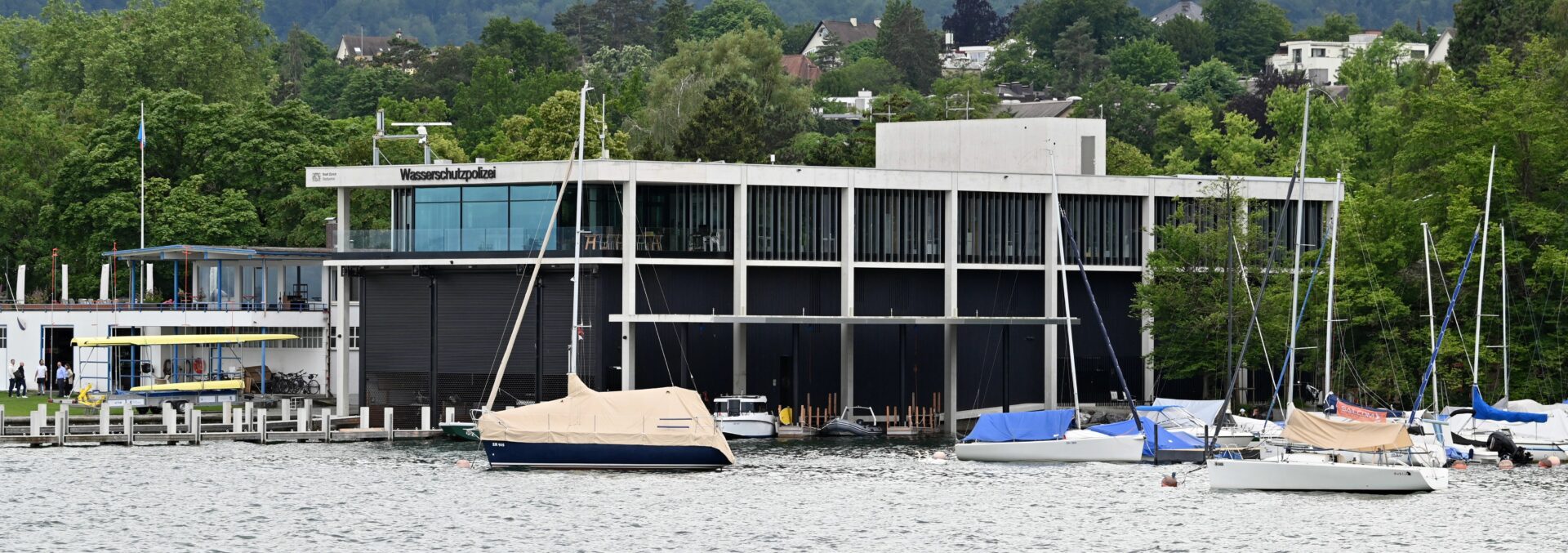 Der Neubau mit Blick auf die gesamte Stadtzüricher Seebucht bildet die optimale Grundlage für ein gründliches und sicheres Arbeiten. Die ARGE aus e2a Architekten und WSP Suisse orientierte sich bei der Planung an der Optik der typischen Landungsstege vor Ort. Oberhalb der Anlegestellen, Fahrzeughallen und Funktionsräumen im Erdgeschoss und ersten Obergeschoss befinden sich im zweiten Obergeschoss moderne Büro- und Besprechungsräume. Herzstück des Gebäudes ist ein dreiseitig verglaster Kommandoraum, der rund um die Uhr besetzt ist.