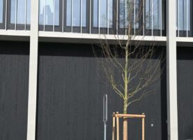 Im zweiten Obergeschoss realisierte Lindner diverse Büro- und Sitzungswände inklusive der Türanlagen, zum Teil mit Sicherheitszugängen und intergerierten Schalterpaneelen. Das Design der Oberflächen orientierte sich dabei an einem schlichten und funktionalen Material- und Farbmix. Neben rot lackierten Holztüren, die speziell mit Bullaugenfenstern gefertigt wurden, finden sich vor allem Holztrennwände und Wandverkleidungen in furnierter Seekiefer-Optik wieder. Damit spiegeln sich die Funktionen der WaPo in der Einrichtung wider – ein modernes neues Zuhause für eine wichtige polizeiliche Instanz.