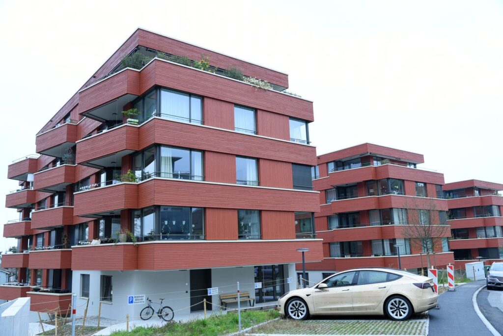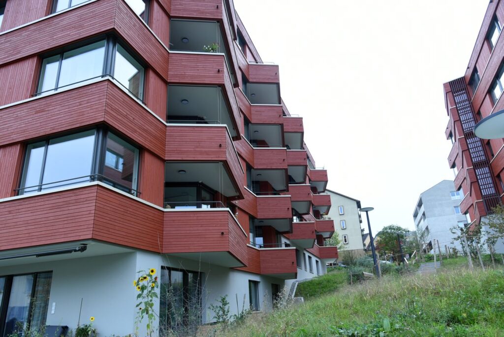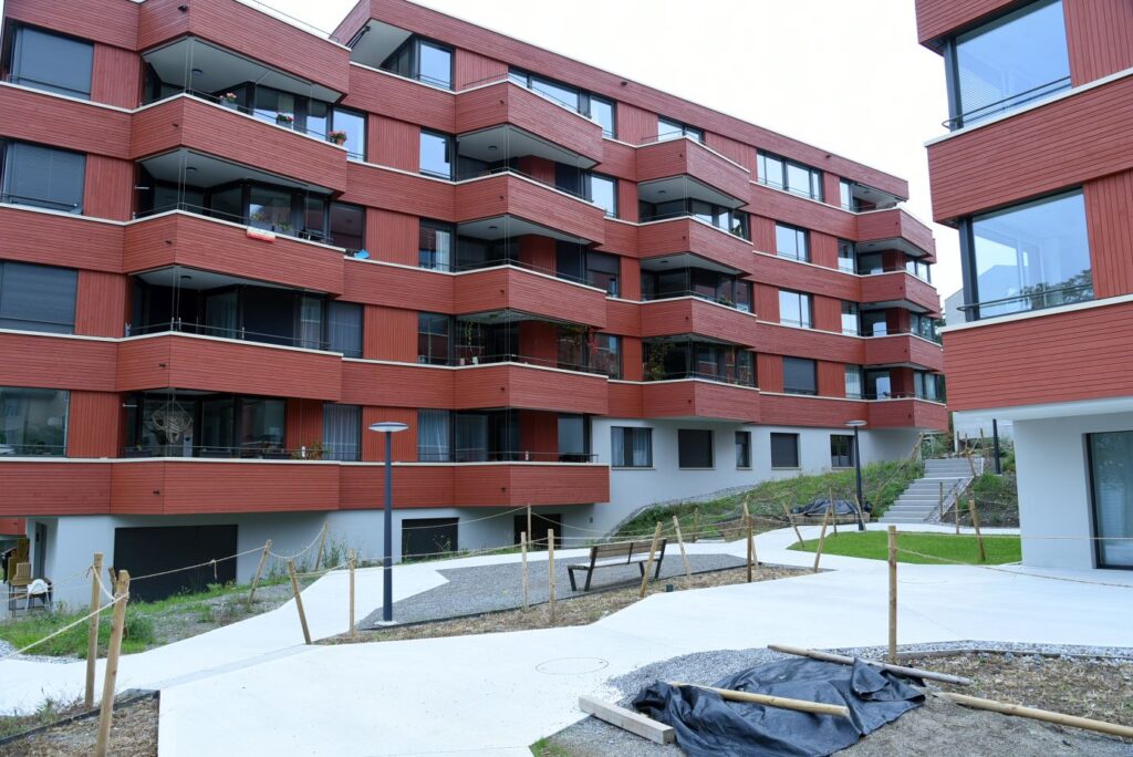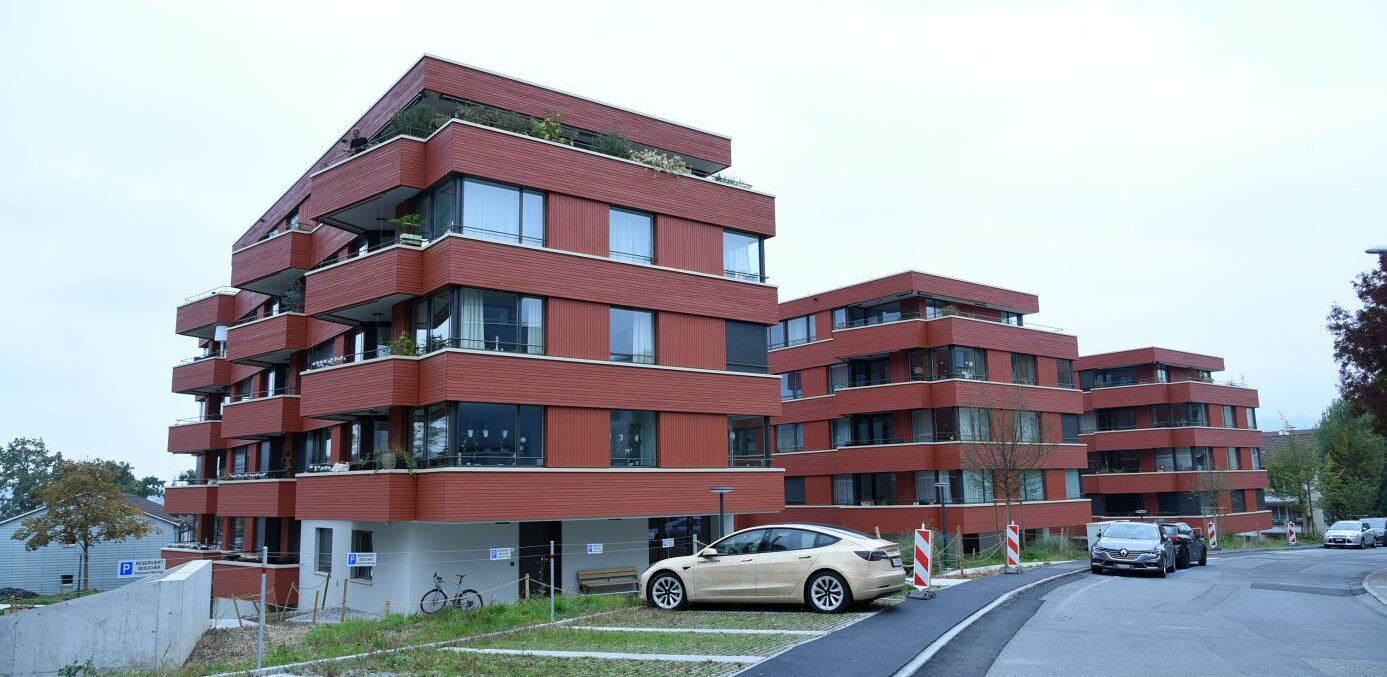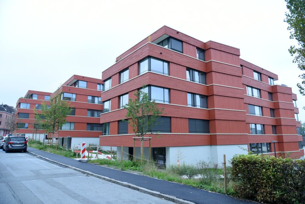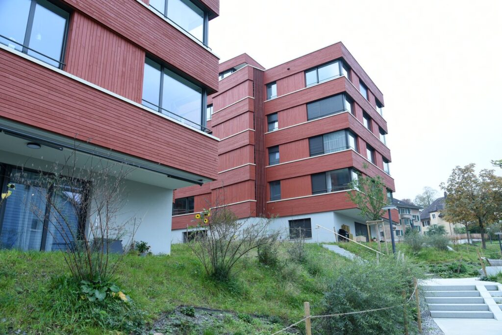 Drei Ersatzneubauten mit 45 Genossenschaftswohnungen, drei Jokerzimmern und einem Gemeinschaftsraum fügen sich in die Zeilenstruktur der Nachkriegszeit ein. Die Adressen an der Weinberglistrasse sind offen und einladend.