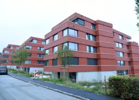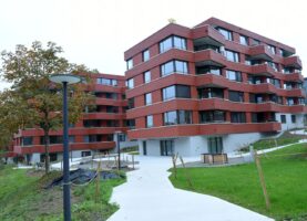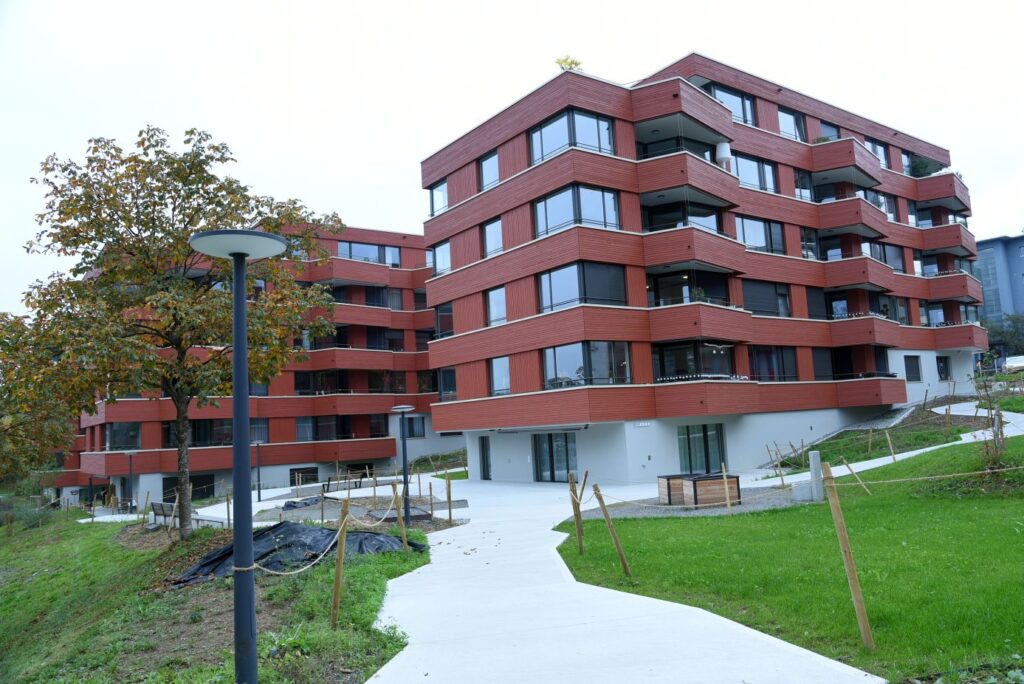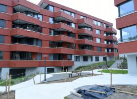 Die gedeckten Aussenbereiche bei den Eingängen eignen sich zum Verweilen und Spielen und fördern den Kontakt von Jung und Alt. Die grosszügige und lichtdurchflutete Eingangshalle erschliesst jeweils zwei Treppenhäuser. Die Wohnungen sind Ost-West oder dreiseitig ausgerichtet und eignen sich für verschiedene Lebensabschnitte.