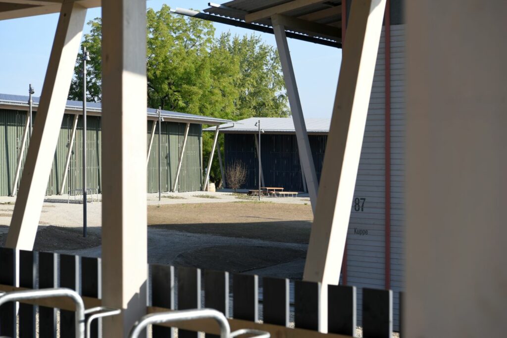 Die Baukörper vereinigen unter ihren weit ausladenden Dächern eine bunte Mischung von Wohnungen. Diese sind komplementär ineinandergefügt und thematisieren so räumlich das Zusammenleben unterschiedlicher Lebensformen.