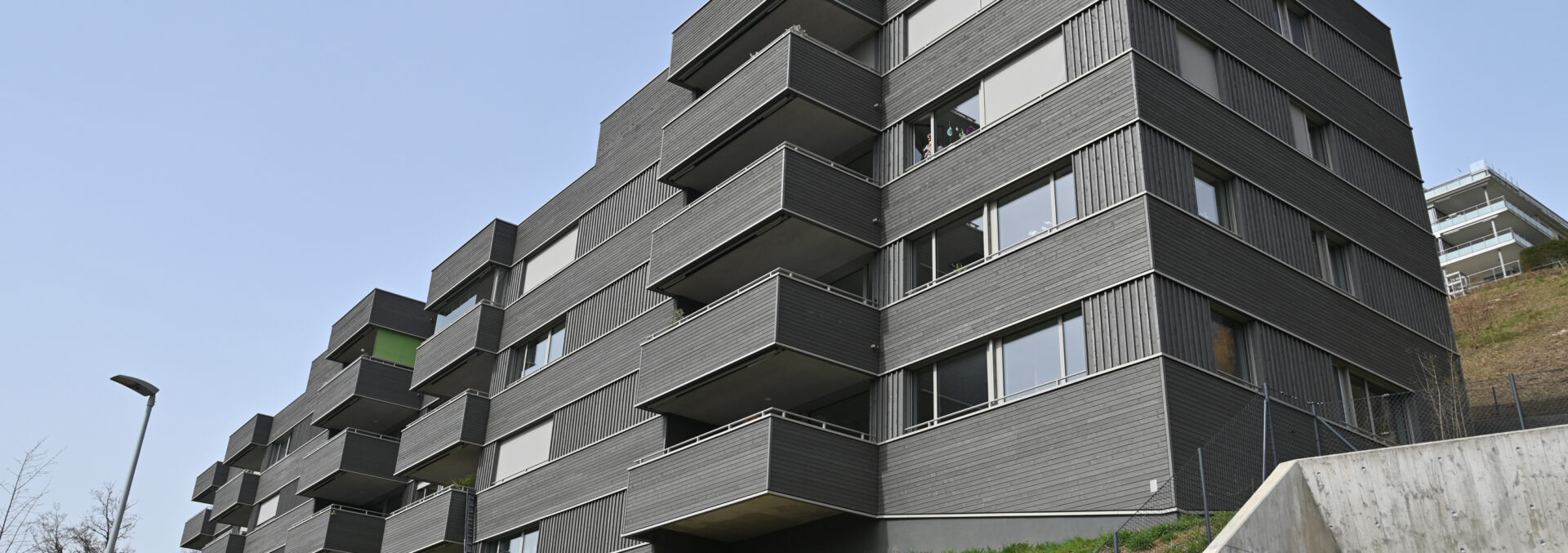 Etwas ausserhalb des Krienser Zentrums liegt das Grundstück Mülirain an steiler, südorientierter Hanglage. Die Überbauung hat 38 unterschiedlich grosse Wohnungen. Die Baukörper sind gestaffelt am Hang angeordnet und mit einer natürlich wirkenden Holzfassade ausgestattet, um die Absicht der Integration in die Landschaft zu unterstreichen.